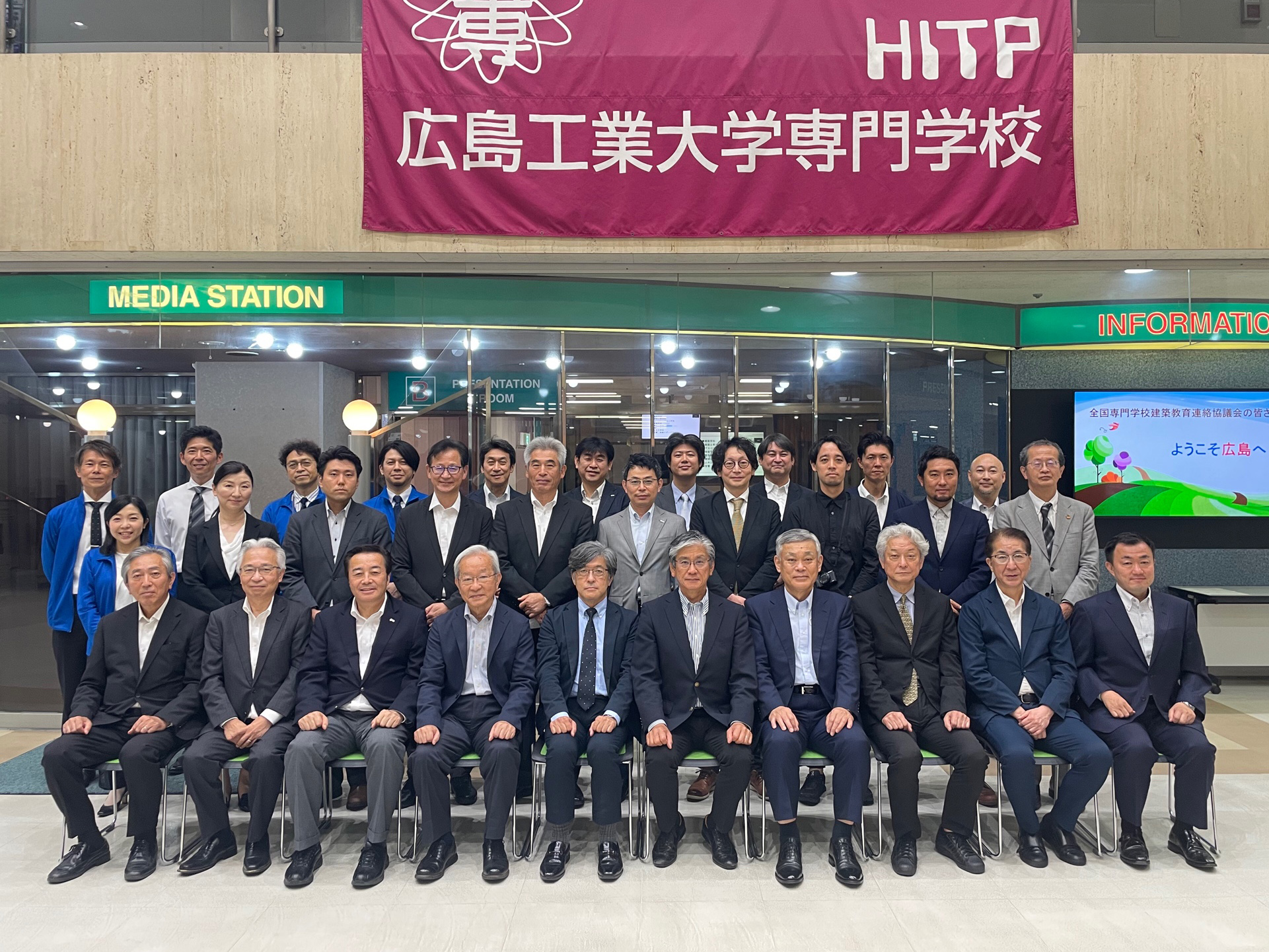 広島工業大学専門学校の校舎・施設見学後、情報交換・懇親会が開かれ、 さらなる親睦・交流を深めることができました。 |